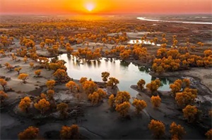 沙雅县沿塔里木河分布着470万亩原始胡杨林,是阻挡塔克拉玛干沙漠风沙侵袭的重要生态屏障。