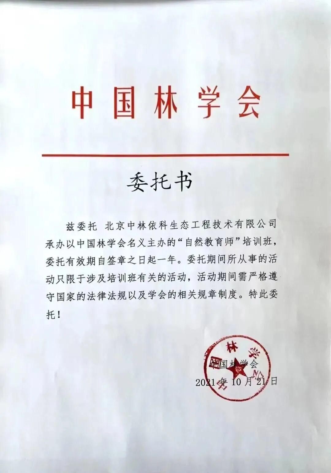 2021年10月,北京中林依科生态工程技术有限公司受中国林学会委托开展“自然教育师”的培训工作。